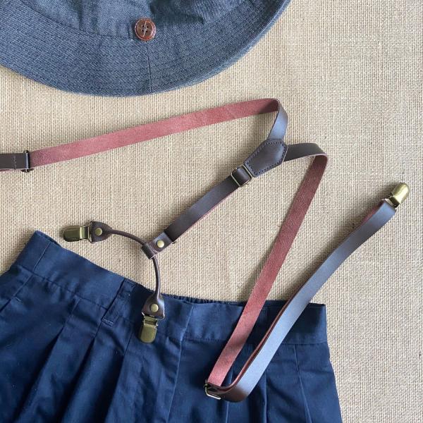 haoa サスペンダー 革サスペンダーは、ブラック ブラウン、ベージュ、ワインレッドの4カラーが楽しめる牛本革製のレザーサスペンダーです。