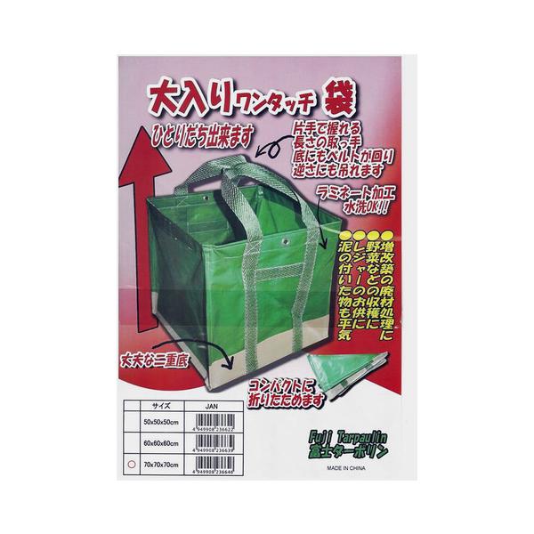 大入りワンタッチ袋 70x70x70cm 約340L サイズ大 フゴ 自立バック 自立式フゴ 富士ターポリン 2重底タイプ