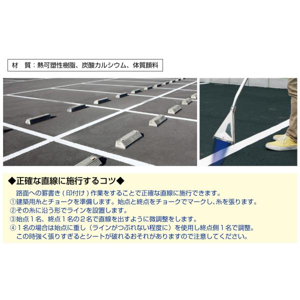 バーナーで加熱し溶着させる路面標示材です。