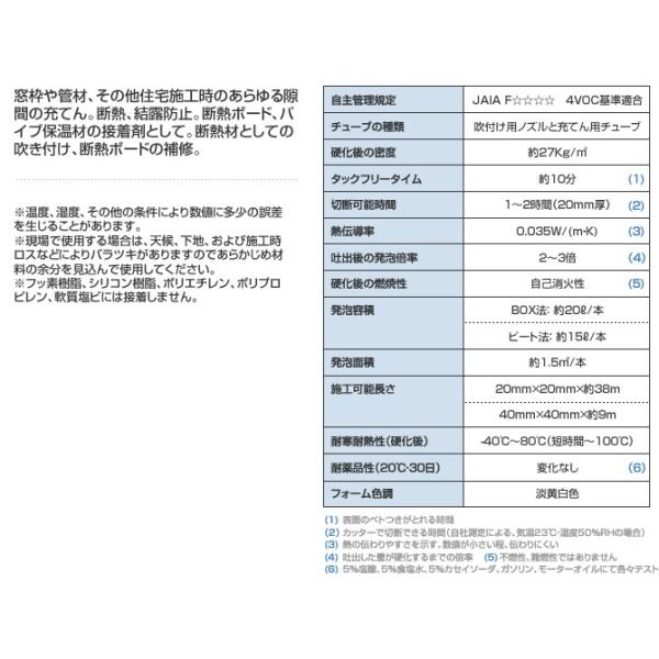 用途:窓枠や管材、その他住宅施工時のあらゆる隙間の充てん。