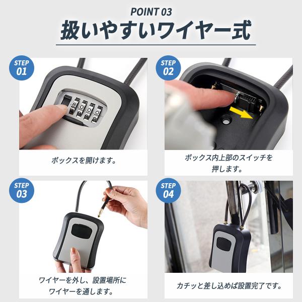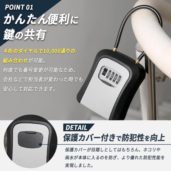 キーボックス ワイヤー ダイヤル 暗証番号 南京錠 持ち運び 壁掛け 屋外 玄関 ドアノブ 工事現場用 おしゃれ 大容量 防水