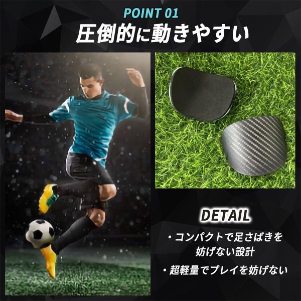サッカーの動きを邪魔しにくい極小サイズのレガース(すね当て)。