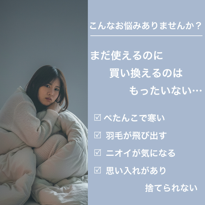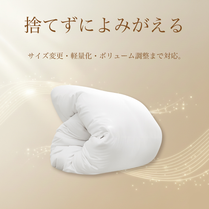 羽毛布団 打ち直し シングル 布団リフォーム クリーニング 丸洗い 羽毛掛け布団 冬用 春秋用 夏用 選べる仕上がり 工場直販 足し羽毛 2枚を1枚に SDGs