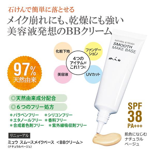【リニューアル】miu ミュウ スムースメイクベース BBクリーム SPF38 PA+++ | 日焼け止め 化粧下地 保湿 毛穴 無添加 敏感肌 カバー 石けんで落とせる