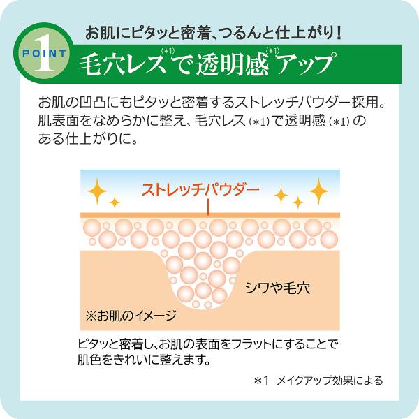 ◎ストレッチパウダーがピタッと密着するので、お肌をフラットに整え