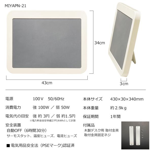 ヒーター パネルヒーター デスクヒーター 遠赤外線 省エネ スリム 薄型 足元 オフィス デスク 暖房器具 MIYAPN-21【沖縄離島配送不可】
