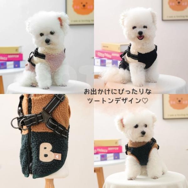 犬 服 冬服 ハーネス付き ボア ベスト ジャンバー アウター 背中開き 着せやすい 防寒 上着 着脱簡単 おしゃれ 可愛い ハーネス 秋 冬 COTEN