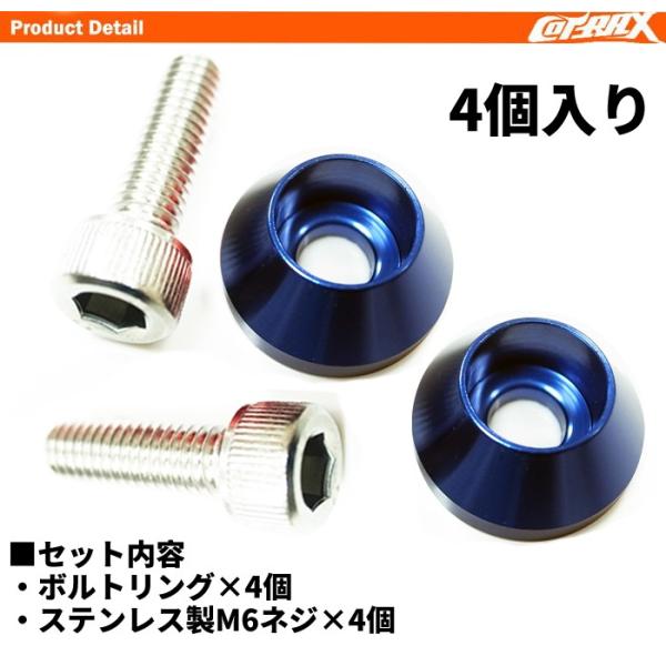 【COTRAX】ナンバーボルト ナンバープレート用 M6ステンボルト 台湾製 アルマイト ドレスアップ カスタム 自動車 バイク 汎用 4個set サークル(ブルー)
