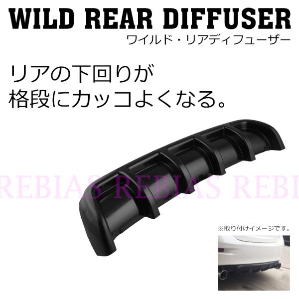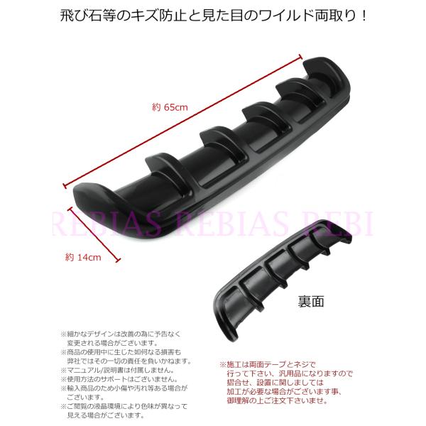 汎用 リアディフューザー貼るだけ簡単!リアがワイルドに大変身!※下部分に取り付けとなりますので、 用途に応じてネジやステーをご使用下さい。意外とおろそかになりがちなリアバンパー部分、ウイング車などには純正じゃちょっと物足りないですね、、、そんな時はこれ!!