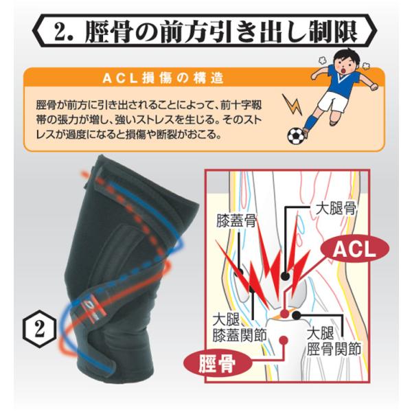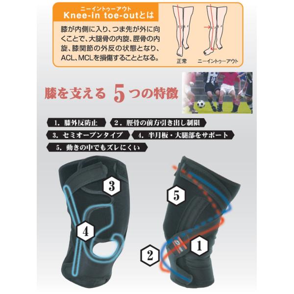 ACL、MCLを損傷する際、同時に痛めやすい半月板へのサポートもプラスした付加価値の高いサポーターとなっています。