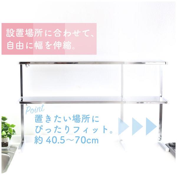 爆買 キッチンラック シンク上 カウンターラック 棚2段 スリム ステンレス 棚 キッチン トースター上 収納 ラック コンロ奥 伸縮 調味料 日本製 作業台 川口工器