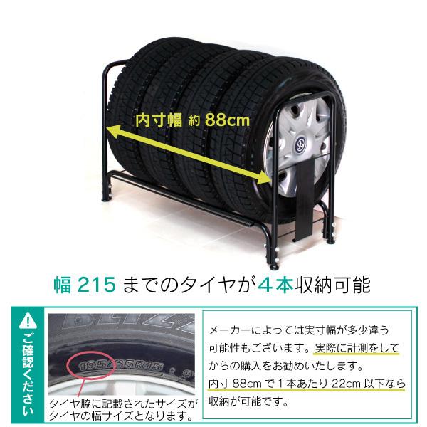 タイヤラック 横置き 4本 日本製 耐荷重 120kg スロープ付き タイヤ 収納 ラック 収納庫 丈夫 頑丈 黒 ブラック らくらく