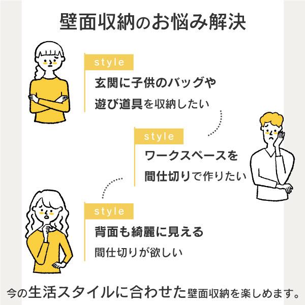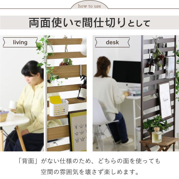 壁面使いはもちろん、間仕切りとしても設置すれば表と裏で異なるテイストが楽しめます。