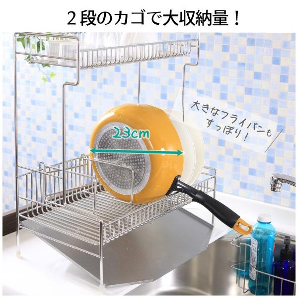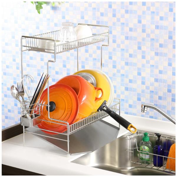 水切り 水切りラック 水切りかご 水切りカゴ 水切りバスケット 2段水切り 水切り2段 2段 ステンレス水切り 水切りステンレス ステンレス ステン シンクサイド シンク 省スペース 大容量 ステンレス ステン 食器 皿 フライパン 鍋 箸 カトラリー