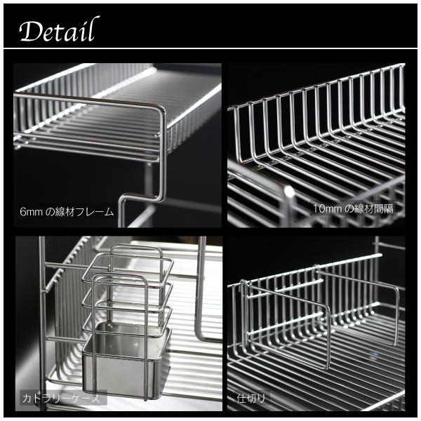 ■材質:本体・仕切り:18-8ステンレス、水切りトレー:ステンレス鋼、カトラリーケース:18-8ステンレス、脚チューブ:シリコン樹脂