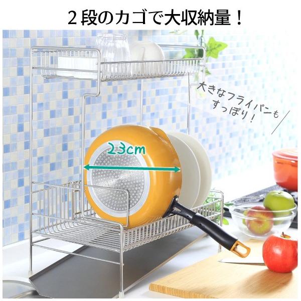 水切り 水切りラック 水切りかご 水切りカゴ 水切りバスケット 2段水切り 水切り2段 2段 ステンレス水切り 水切りステンレス ステンレス ステン シンクサイド シンク 省スペース 大容量 ステンレス ステン 食器 皿 フライパン 鍋 箸 カトラリー