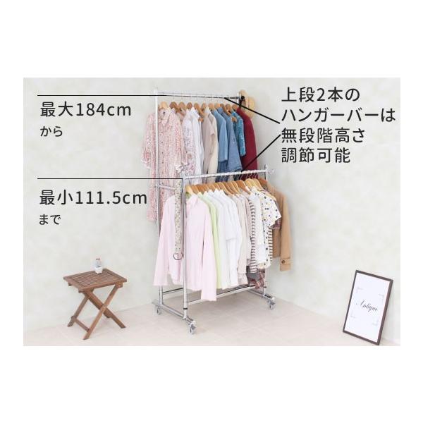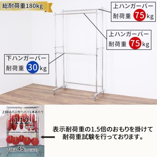 頑丈 ダブル ハンガーラック 幅130cm 総耐荷重180kg キャスター付き 丈夫 パイプハンガー コートハンガー 2段ハンガー 洋服掛け 高さ 伸縮 衣類 収納 川口工器