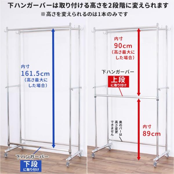下ハンガーバーの内1本は、高さが可変できる仕様(2段階)。