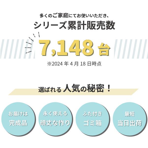 キッチン家電収納&ごみ箱&作業台の1台3役!キッチンワークがグッと快適。しっかり30kg耐荷重と人工大理石の天板は、大型オーブンレンジの設置やサブ調理台としてもおすすめです。
