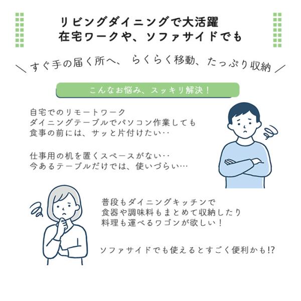 食器やお料理を運んだり、自宅でのPCワークの補助としてサブテーブル使い、ソファーサイドテーブルとしても。