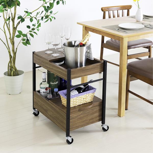 リビングダイニングで活躍するフタ付の木製ワゴン。