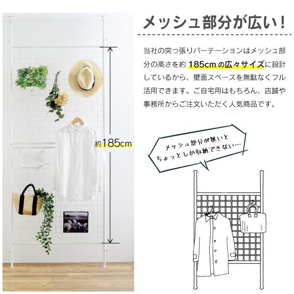 突っ張り メッシュ パーテーション 幅 95 cm2台セット 送料無料 川口工器 ネット ホワイト つっぱり 3m 壁面 収納 ラック ウォール