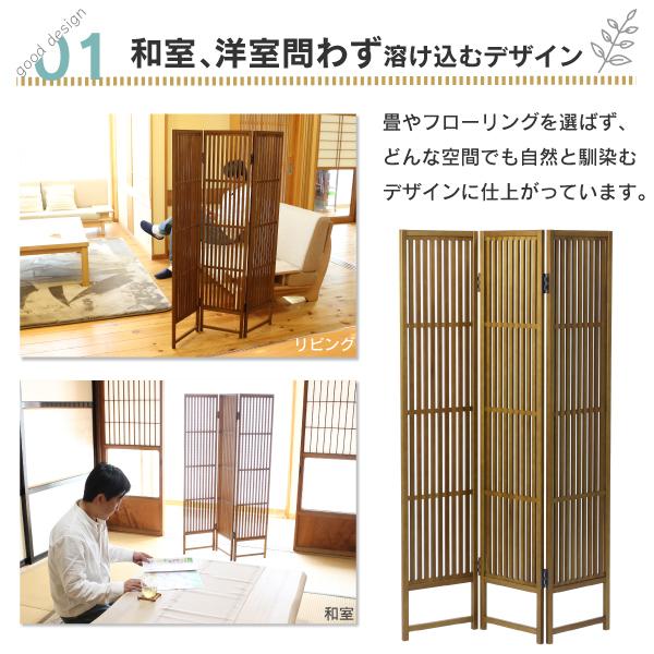 間仕切り パーテーション 和風 3曲 日本製 完成品 おしゃれ リビング 和室 高さ135 3連 3枚 ワークスペース 勉強 衝立 ついたて 家具 格子 パーティション