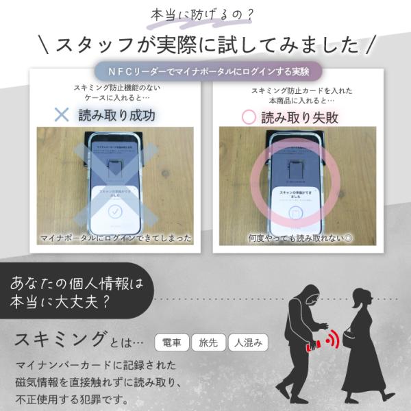 スキミング防止カードを使用することで、非接触スキミングから個人情報を守ります。