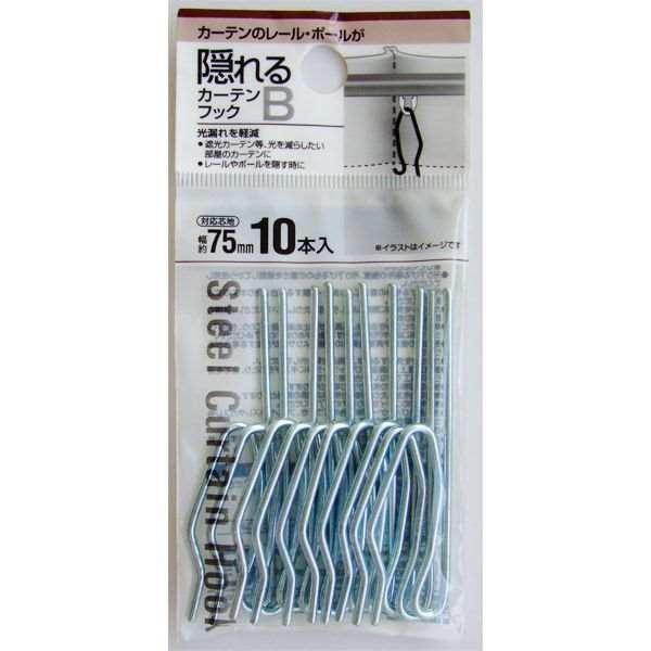 カーテンフック Bタイプ 10個入り 大 芯地巾 75mm (メール便・送料無料)金属 金具 セイワ・プロ