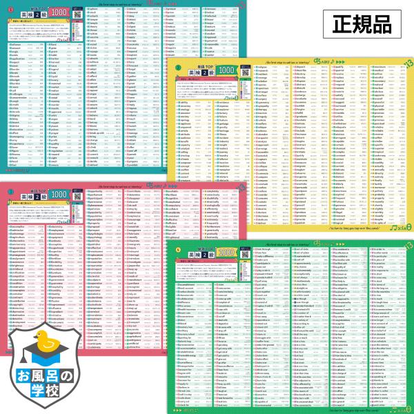お風呂の学校 英検2級の英単語まとめ お風呂ポスター 4枚セット 音声付き 1000単語収録 B3サイズ 日本製 受験 英検 英語 英会話 防水 耐水 学習