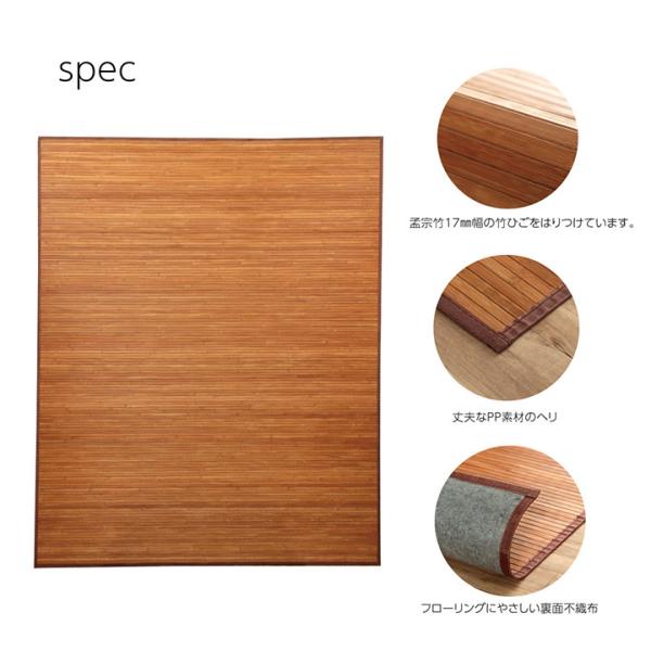 竹 ラグ カーペット 無地 自然素材 丈夫 ひんやり 孟宗竹 皮下使用 ライトブラウン 約200×240cm