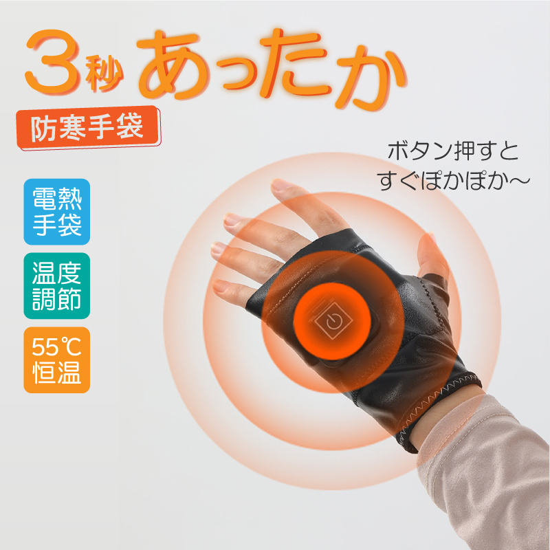 ヒーターグローブ 手袋 防寒 電熱グローブ usb バッテリー コードレス 充電式 バイク スポーツ観戦 釣り 指なし 温熱手袋