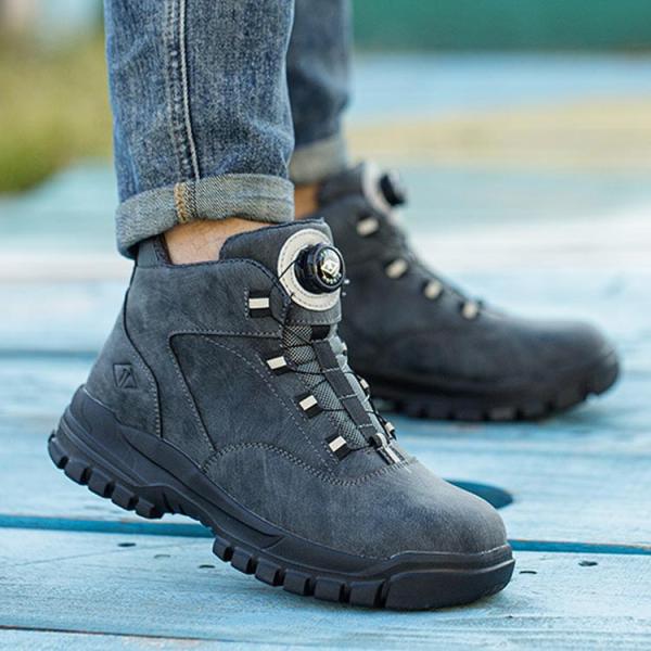ダイヤル式 作業靴 鋼鉄先芯 ワークブーツ シューズ ハイカット 先芯入り メンズ 靴 防滑 安全スニーカー 紐なし 現場 作業用 安全靴 ワークシュ