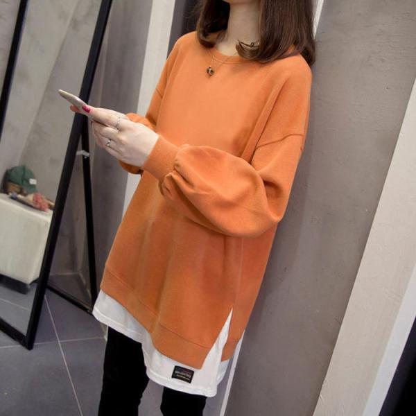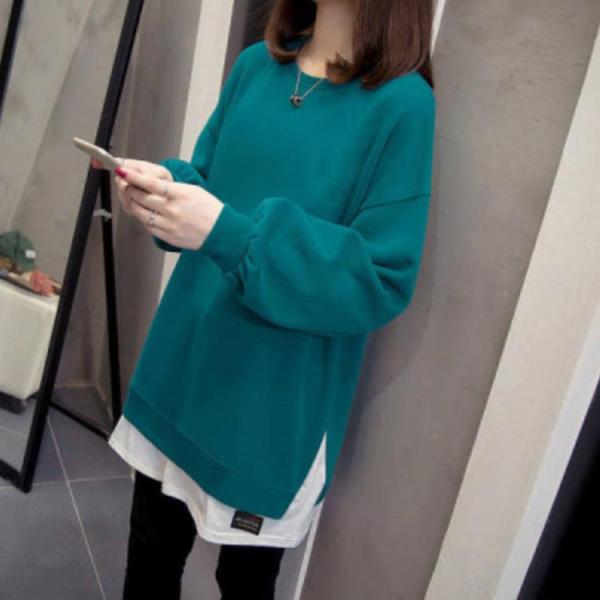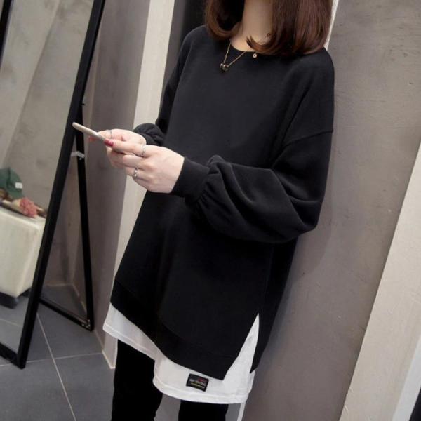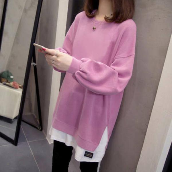 トップス レイヤード風 ロングT カジュアル トレーナー ロング丈 秋冬 春秋 重ね着風 レディース ラウンドネック 冬 春 ゆったり 秋服 長袖 春