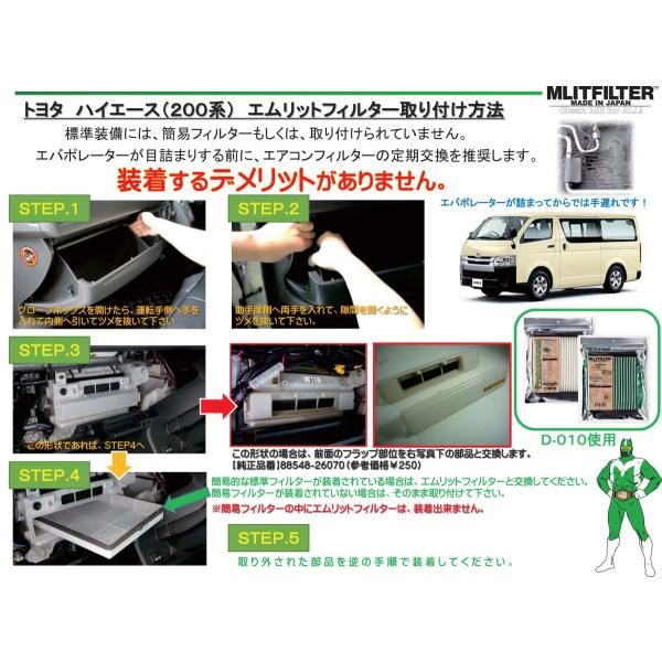 ハイエース レジアスエース エムリットフィルター エアコンフィルター 200系 H19/9- エムリット MLIT MLITFILTER (D-010