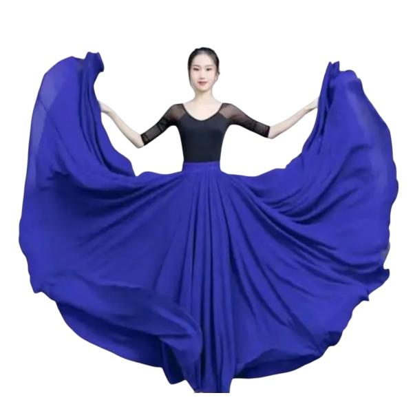 720度 2層シフォンスカート バレエ ベリーダンス ジプシー ロングスカート ダンサー練習着 フレアスカート パフォーマンス用 ダークブルー