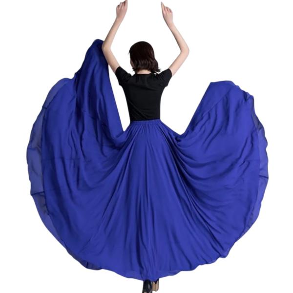 軽やかなシフォン素材とたっぷりのフレアが、女性らしい動きと姿を美しく演出。ベリーダンス、ジプシーダンス、バレエ、フラメンコなど幅広いジャンルに最適です。