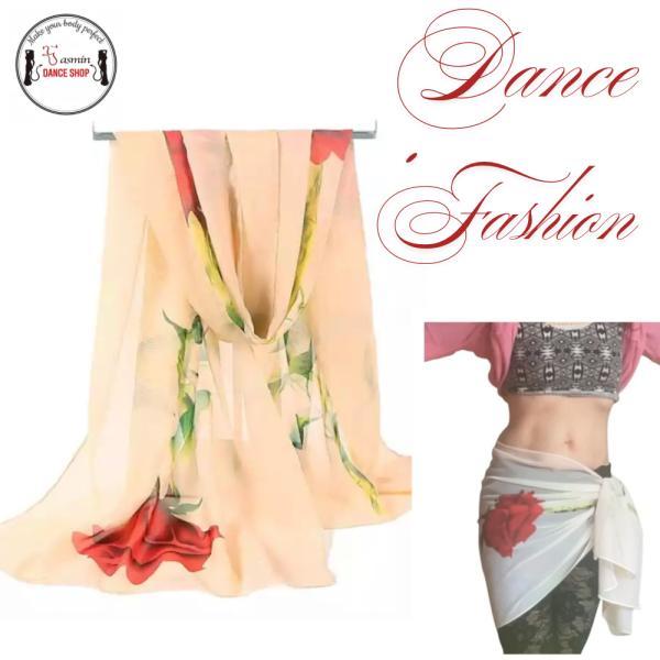 ローズ柄 シフォンロングスカーフ レディース|ライトベージュ 普段使い・ベリーダンス・ラテンダンス対応