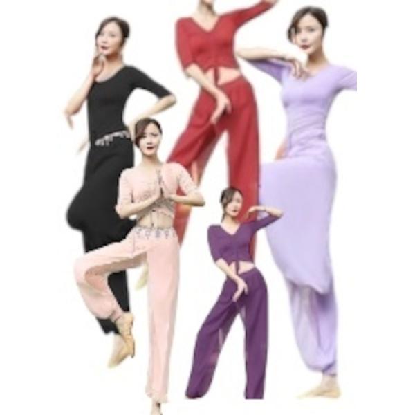 ベリーダンスヨガウェアスーツ トレーニングウェアスポーツフィットネスエクササイズVネックセクシーで快適な薄いハイエンド