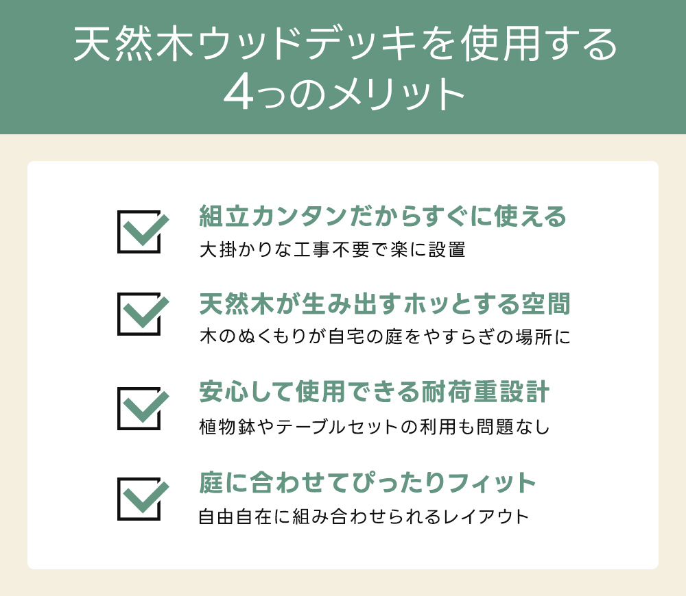 天然木ならではの木のぬくもりを感じられるウッドデッキセットです!
