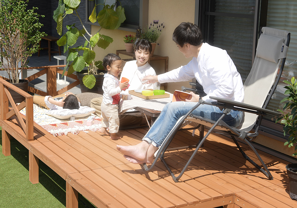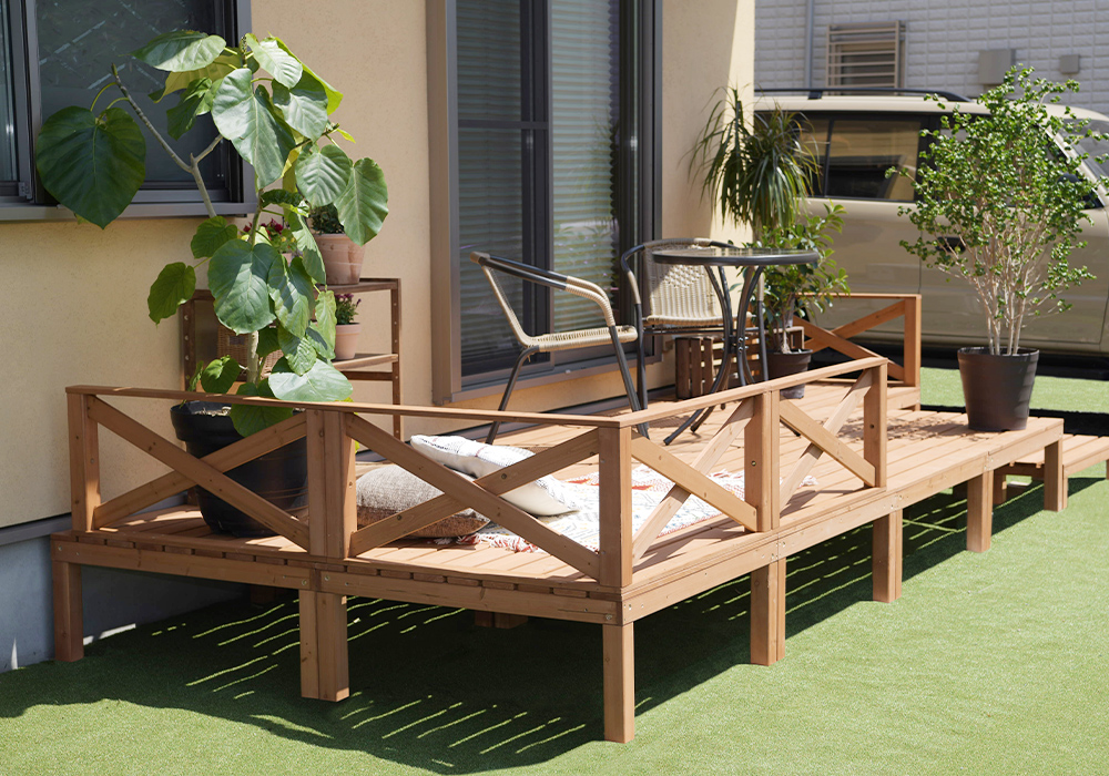 ウッドテラス 材料 憩いの場 お庭 縁側 洋風 モダン リラックススペース ステップ付き ウッドステップ アウトドア ベランダ 一軒家 デッキ 気分転換 外国風 べランピング