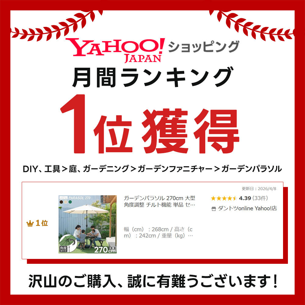 パラソル:幅268×奥行268×高さ242cm