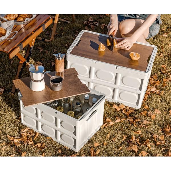 木目天板 折りたたみ コンテナボックス オリコン 30L 持ち手付き コンテナBOX 折り畳み キャンプ 収納 整理 収納ボックス 収納BOX テーブル tec-tablebox