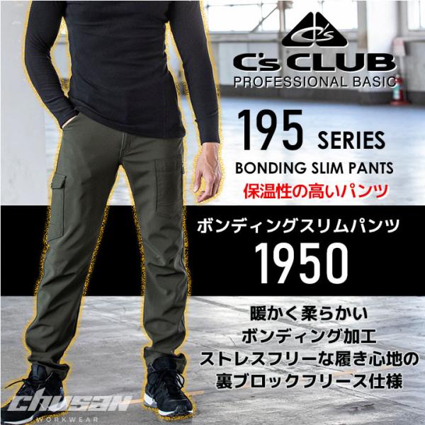 防寒ズボン 防風 中国産業 1950 防寒パンツ ボンディングスリムパンツ 防寒服 保温 撥水 起毛 メンズ 裏ブロックフリース Cs CLUB 作業服