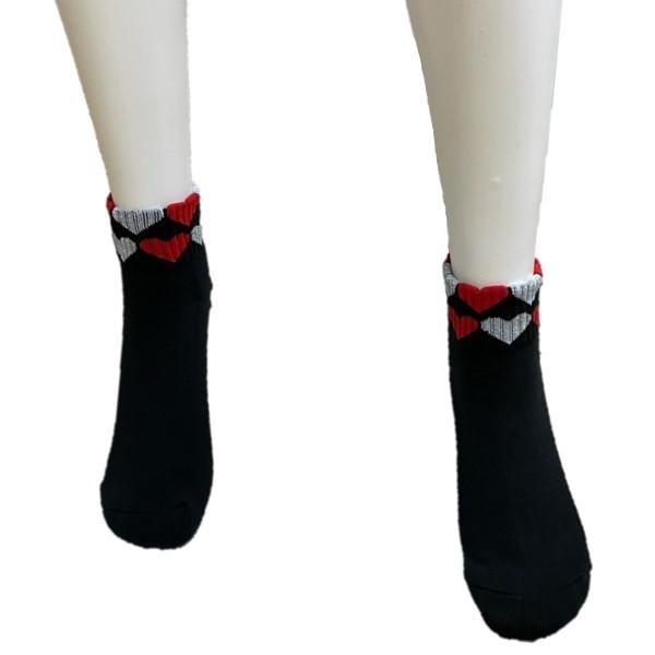 np スポーツソックス レディース トップハート柄 カラー/ブラック(レッド×シルバー) フリーサイズ(23〜25cm)
