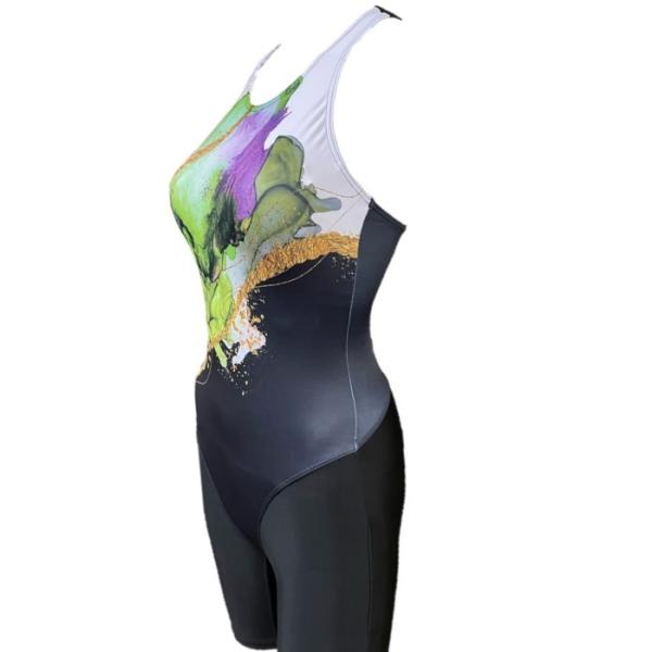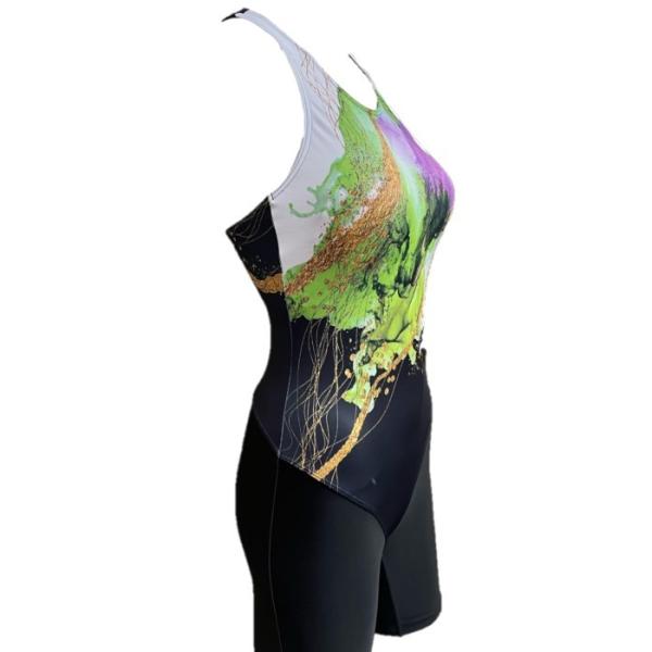 ★セパレートタイプの水着と比べてよりカラダにフィットしやすく、水の抵抗も軽減されます。