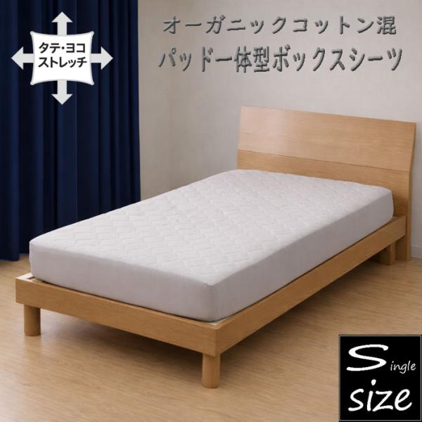 送料無料(北海道、沖縄は1500円別途)シングルサイズ パッド一体型ボックスシーツ BOXシーツ オーガニックコットン混