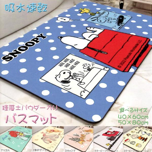 キャラクター 珪藻土パウダー入りバスマット 約40×60cm/50×80cm スヌーピー プーさん アリエル スキャンプ ソフト珪藻土 柔らかい 吸水速乾 送料無料