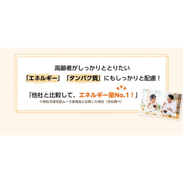 □高栄養かつ彩り豊かで食欲そそる、舌でつぶせるやわらかさのムース食です。