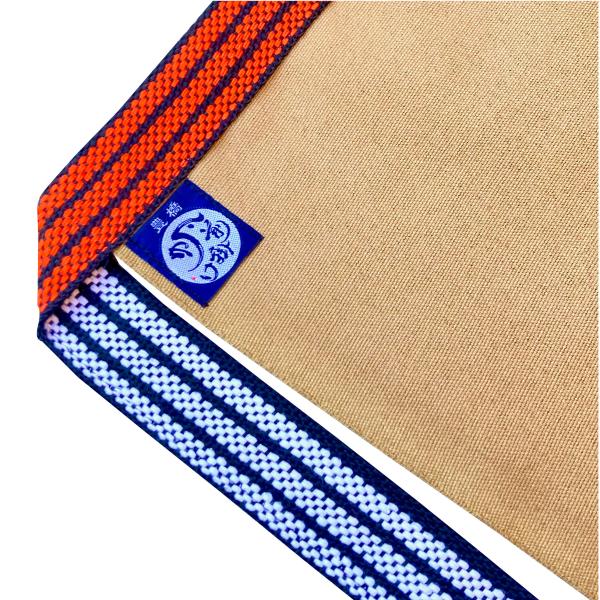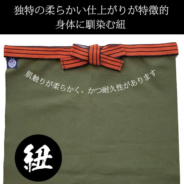 下部の糸のふさ部分は帆前掛けの特徴の腰紐は触りが軟かくかつ耐久性もありますので長時間付けていても苦になりません。